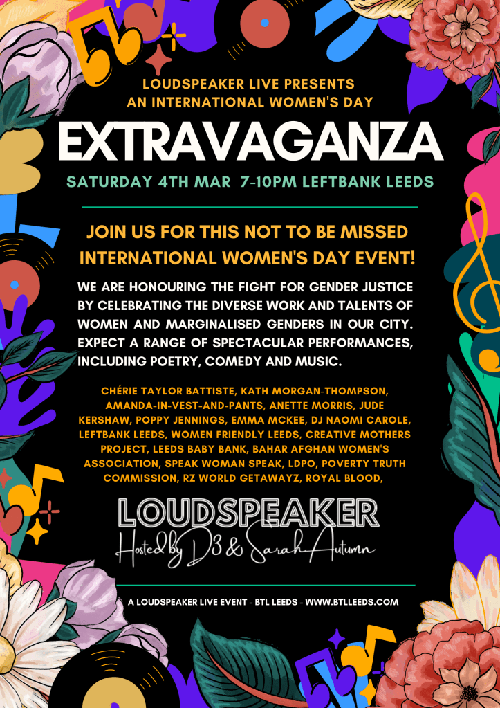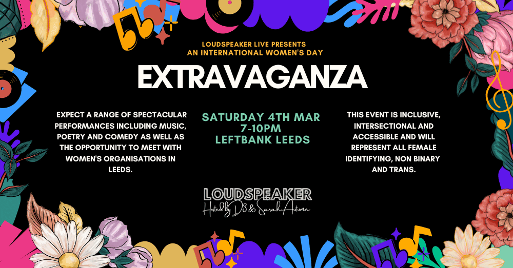 LOUDSPEAKER Live had the honour and pleasure of presenting an International Women’s Day Extravaganza in March 2023! Taking place at Left Bank Leeds, and featuring a showcase of amazing organisations and performances by women and marginalised genders. We’re applying for funding to deliver this again in 2025 along with a programme of community education and support. So keep a look out for updates and email us at btlleeds@gmail.com if you’ want ‘d like to get involved or support! Below are some highlights from our last event.